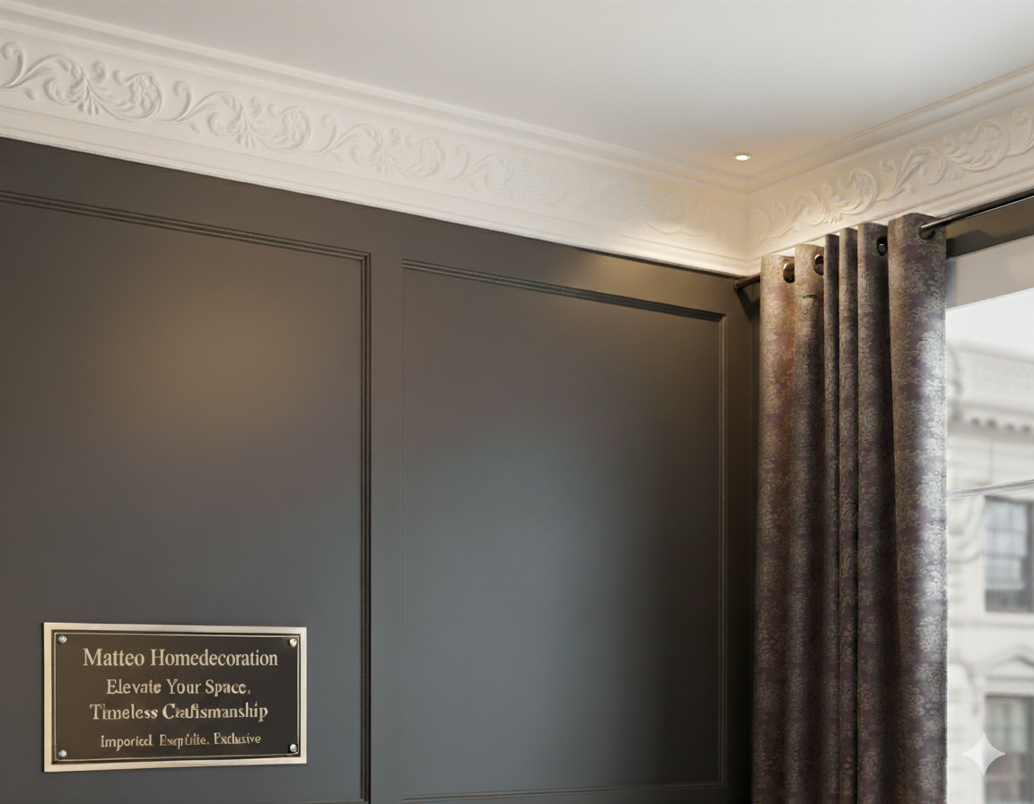 Die Zierleiste MG-13 aus der Matteo Homedecoration Kollektion ist die perfekte Wahl für alle, die den hochwertigen Look von Gipsstuck suchen, aber die einfache Verarbeitung von modernen Materialien bevorzugen. Das filigrane, florale Muster sorgt für einen stilvollen Übergang zwischen Wand und Decke.